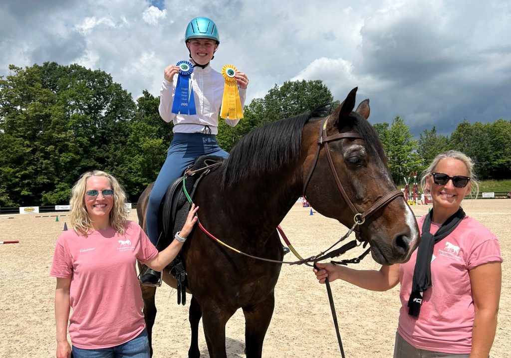 For someone with anxiety or a physical disability, we watch their strength and confidence grow as they trot around the ring and feel the connection with their horse. For a teen who has just lost a loved one or has been bullied at school, a horse can give them a moment of comfort as it gently wraps its head around them. And for a survivor of trauma who is haunted by the past, working with a horse can teach them to be “in the moment” as they regulate their heartbeat with that of a horse.