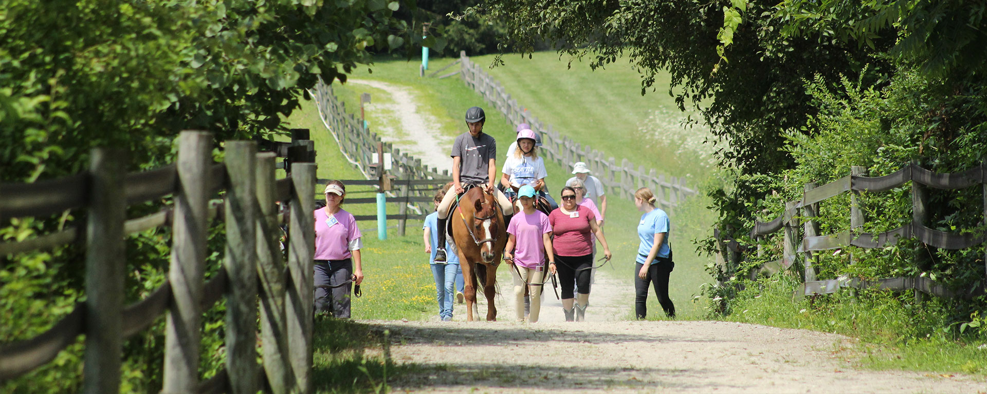 - Walking alongside horses during lessons to provide encouragement and extra support for our students